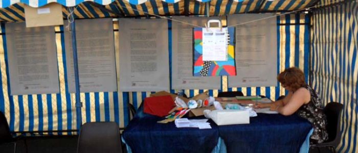 2012 Septembre – Fête de la Presqu’île à Caen « Pochette-surprise ! » et exposition de textes à lire.
